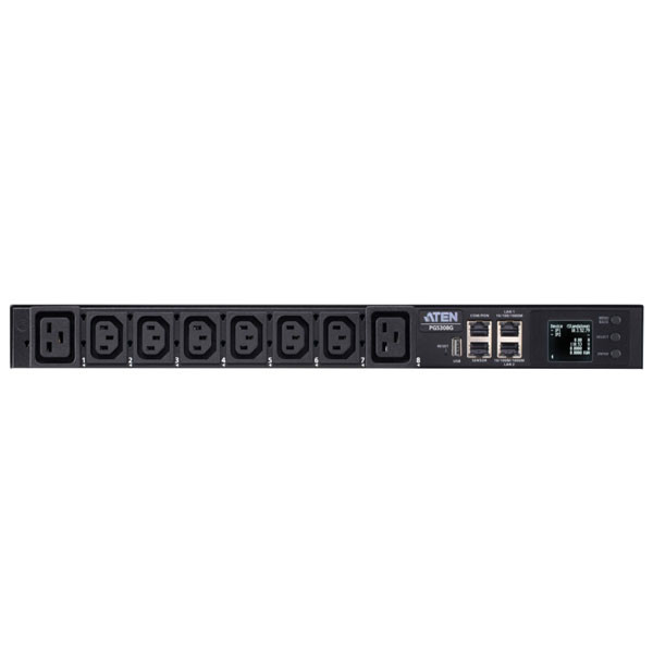 Aten PG5308G 8-Outlet 1U Metered eco PDU, Maximize 1U Power Efficiency, Minimize IT Overheads Cascade up to 64 PDUs with Dual 1G LAN Ports Connection, 30A/32A