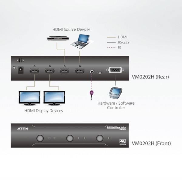 ATEN VM0202H 2X2 4K HDMI MATRIX SWITCH