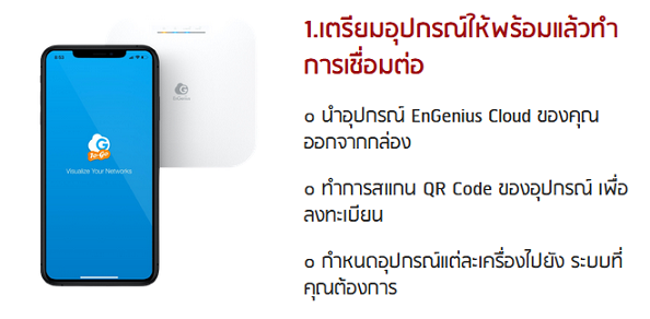 การตั้งค่าเซ็ตอัพและมอนิเตอร์อุปกรณ์ EnGenius ECW120 ง่ายๆ แค่ปลายนิ้วสัมผัส ในมือถือหรือแท็บเล็ตของคุณ ได้ทั้ง App Store และ Google Ply เพียง 4 ขั้นตอน ดังนี้
