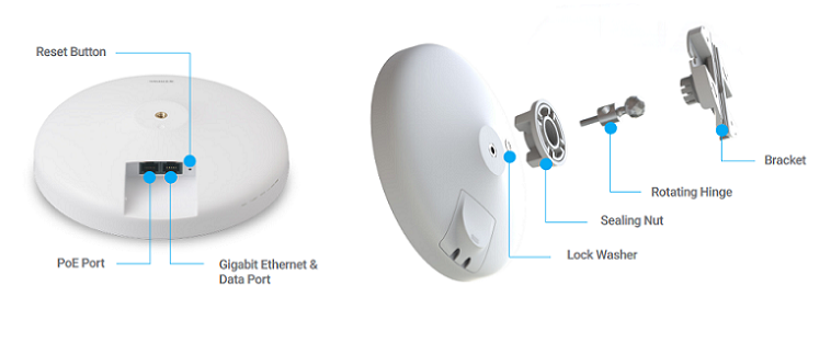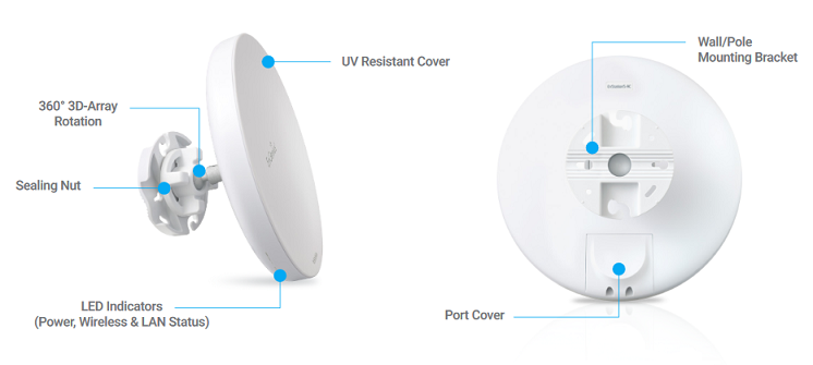 | มาตรฐาน | ไวเลส IEEE802.11a/n/ac PoE 802.3at (in)/802.3af (out) กันน้ำ IP55 |