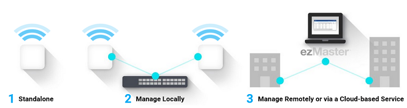 การทำงานผ่านสวิตซ์ Controller Neutron Series ได้แก่รุ่น EWS2910P / EWS5912FP / EWS7928P / EWS1200-28TFP / EWS7926EFP / EWS7952FP และผ่านโปรแกรม ezMaster นั้นนอกจากตั้งค่าอุปกรณ์ AP ได้แล้วยังสามารถควบคุมและดูสถานะการทำงานได้อีกด้วย โดยมีฟังก์ชันการทำงานที่โดดเด่นคือ