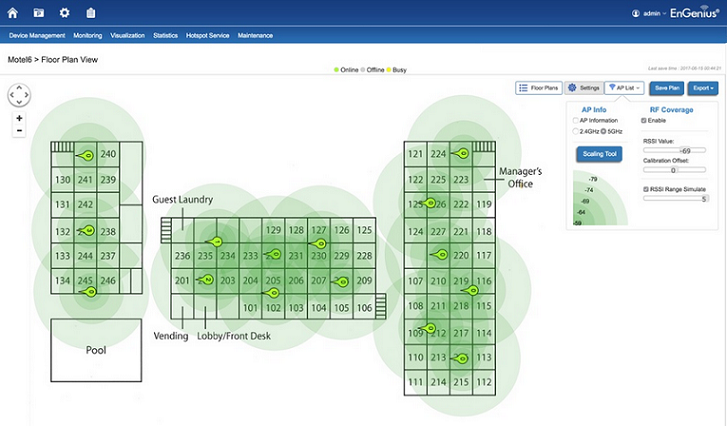 Fast Handover : เราสามารถกำหนดค่าของ RSSI ต่ำสุดที่แต่ละ AP ในการยอมรับการเชื่อมต่อของ Client User ที่เกาะใช้งานได้ เช่นเรากำหนดค่าไว้ที่ -75dBi เมื่อเครื่อง Client User อยู่ห่างจาก AP และมีค่า RSSI ต่ำกว่า -75dBi เช่น -80dBi จะถูกทำ Fast Handover ไปเกาะกับ AP ตัวที่ใกล้กว่าและมีค่า RSSI ดีกว่า -75dBi แทน ซึ่งจะช่วยแชร์โหลดของ Client User ไปยัง AP อื่นๆ ของระบบ และทำให้ผู้ใช้งานได้ความเร็ว Throughput ที่ดีตลอดเวลาแม้ขณะเคลื่อนที่