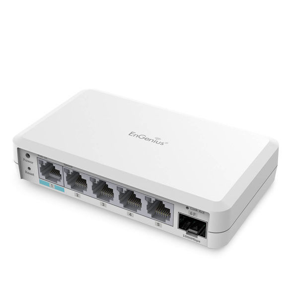 | คุณลักษณะเด่น | • 1x GE PoE port deliver power to other PD devices. • 4x GE ports for high-speed connections. • 1x SFP uplink port for bandwidth-intensive applications. • Zero touch provisioning, centralized cloud configuration and visualized monitoring • • improve the efficiency of network installation and management. • Voice VLAN function ensure the security and quality of VoIP traffic. • Cloud manage switch extenders from anywhere with the EnGenius Cloud App. A Pro license for Cloud To-Go offers more features to fulfill advanced management requirements. • EnGenius FitXpress (cloud-managed) is a cost-effective management option for Switch Extender series products. |