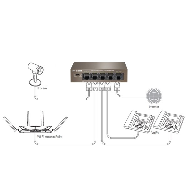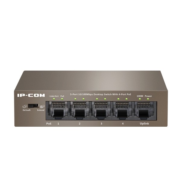 IP-COM รุ่น F1105P-4-63W อุปกรณ์สวิทย์ PoE ขนาด 5 พอร์ต แบบ RJ-45 (10/100Mbps) รองรับการจ่ายไฟฟ้าผ่านสายแลน (PoE) จำนวน 4 พอร์ต กำลังไฟฟ้ารวม 63 วัตต์ Uplink 1 port รองรับมาตรฐาน IEEE 802.3af/at (Power Budget63W) สำหรับใช้งานเพื่อเชื่อมต่อ ระบบเครือข่ายความเร็วสูง
