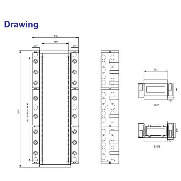 | ส่วนประกอบ | Features • LINK FTTR Main Distribution Frame is designed for residential applications, specifically for Fiber to the Room (FTTR) installations. • The cable can be wiring at front and rear by maximum enlarged opening of the both side. • Vertical Cable Management • Mount on the floor by steel base Material • Cabinet’s Frame : 2.0 mm Electro-galvanized steel sheet • Vertical Cable Management : 1.2 mm Electro-galvanized steel sheet • Steel Base : 1.5 mm Electro-galvanized steel sheet • Electrostatic powder coating, Black (RAL9004) |
