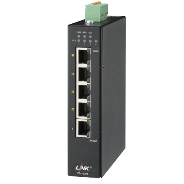 LINK PS-1030T 4-Port Gigabit Industrial PoE+ with 1-Port GE Uplink, PoE Power Budget:90W, Metal Case