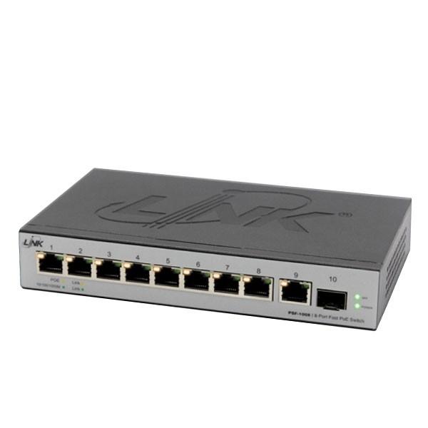 Link PSF-1008 Switch PoE 8-Port Fast Ethernet (90W), 8 FE (PoE) + 1 GE/SFP Combo