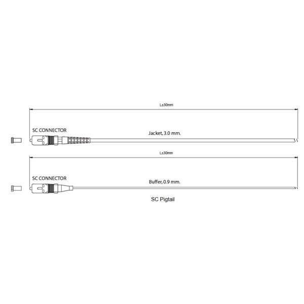 Link UFP960S32-1.5 SC Pigtail Fiber Optic, SM/OS2 Simplex, (3.0 mm Jacket)/APC, Length 1.5 m.