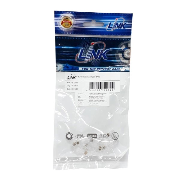Link UL-3012 RJ11 Telephone PLUG (ตัวผู้โทรศัพท์ 6 ขา) บรรจุ 10 ตัว / ถุง