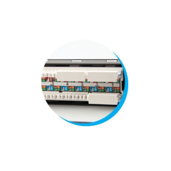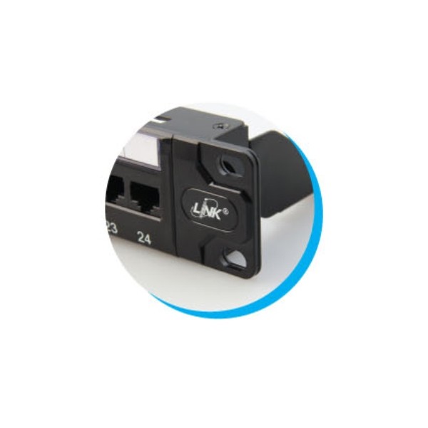 | วัสดุ | Panel : Aluminium Metal Paint Black Color w/ABS Lable : White Paper insert within clear plastic cover Cable Organizing : Cable Support Bar and Cable Ties Jack Contact : Phosphor Bronze with over 50 micro-inches gold plating |