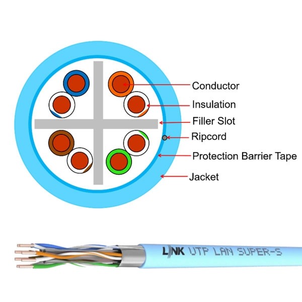 Link US-9156ALSZH CAT6A Indoor UTP Super-S Series LSZH Cable, Bandwidth 500MHz, 23 AWG, LSZH, Aqua Blue Color, 305 M./Pull in Bx. *จัดส่งฟรีเขต กทม.และปริมณฑล