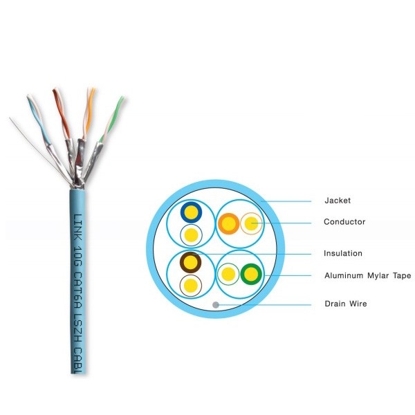 Link US-9256LSZH CAT6A Indoor U/FTP Cable, Bandwidth 500MHz, 23 AWG, LSZH, Aqua Blue Color, 305 M./Roll *ส่งฟรีเขต กทม.