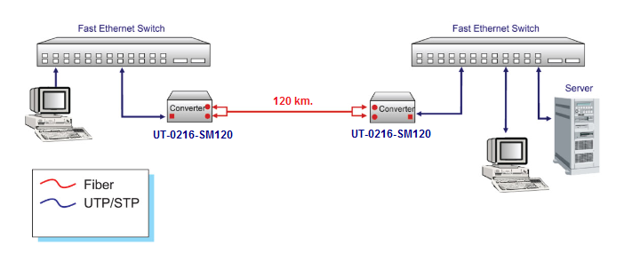 มีเดียคอนเวอร์เตอร์ Link UT-0216-SM120 เป็นอุปกรณ์แปลงสัญญาณไฟฟ้าของพอร์ตแลน RJ45 เป็นสัญญาณแสงส่งผ่านสาย Fiber Optic ซึ่งต้องมีทั้งต้นทางและปลายทางในการเชื่อมต่ออุปกรณ์เครือข่าย (Network) ใช้งานทดแทนสายแลน UTP ที่ถูกจำกัดระยะทางไม่เกิน 100 เมตร โดย Link UT-0216-SM120 รองรับความเร็ว 10/100 Mbps และรับส่งข้อมูลผ่านสายใยแก้วนำแสงชนิดโหมดเดี่ยว (Single-mode) ระยะไกลสูงสุด 120 กิโลเมตร