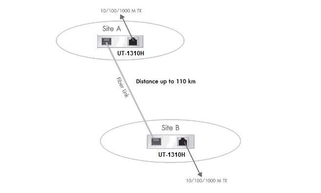 มีเดียคอนเวอร์เตอร์ UT-1310H ออกแบบมาให้ SFP Slot เป็นช่องเปล่าเพื่อสามารถเลือกใช้ SFP Module ได้ตามต้องการเหมาะสมตามหน้างาน รองรับทั้งแบบ Single-Mode และ Multi-Mode ได้ระยะทางสาย Fiber Optic ตั้งแต่ 220 เมตรถึง 110 กิโลเมตร ความเร็วรับส่งข้อมูลสูงถึง Gigabit 10/100/1000Mbps