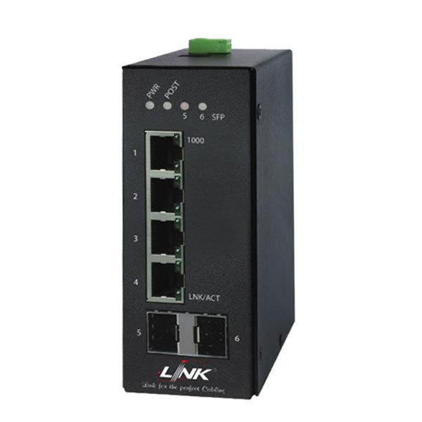 Link UT-1319A Fiber Gigabit Media Converter Hardened Type, 10/100/1000 Mbps, 4-Port RJ45, 2-SFP Slot (Blank)