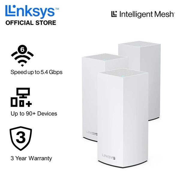 | คุณลักษณะเด่น | • เทคโนโลยี WiFi 6 รองรับการเชื่อมต่ออุปกรณ์ไร้สายได้มากขึ้น • Velop Intelligent Mesh ให้การครอบคลุมสูงสุด • การเข้าถึงช่องสัญญาณ 160 MHz ปลดปล่อยการเชื่อมต่อที่เชื่อถือได้สูง • การเลือกความถี่แบบไดนามิก (DFS) ช่วยลดสัญญาณรบกวน • ชิปเซ็ต Qualcomm Immersive Home 216 มอบความเสถียรเหมือนใช้สายสัญญาณ • ติดตั้ง และ ควบคุมได้ง่ายผ่านแอป Linksys |
