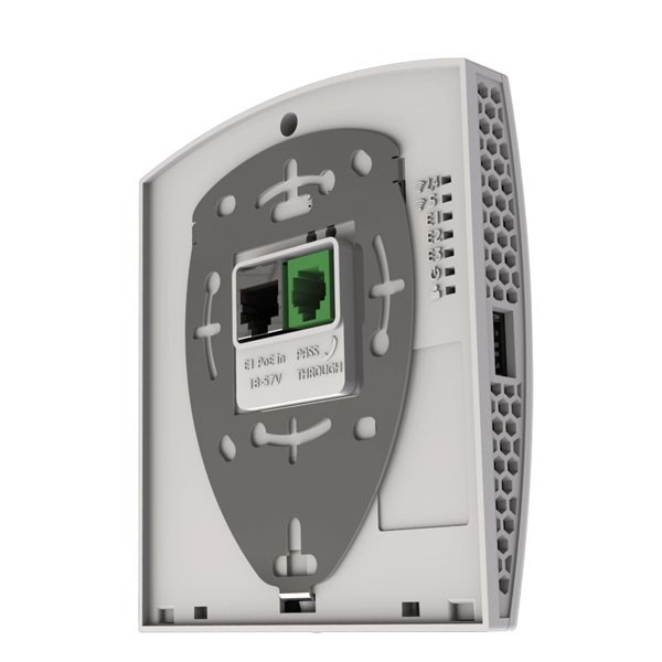 อุปกรณ์ In-Wall AP รุ่น RBwsAP-5Hac2nD (wsAP ac lite) มี 3 พอร์ต ความเร็ว 10/100 Mbps, รองรับไฟเลี้ยง PoE-in 802.3af/at (input Voltage 18-57 V) และรองรับการจ่ายไฟ PoE-Out แบบ Passive PoE, กระจายสัญญาณ WiFi 2 ย่าน 2.4GHz (300 Mbps) และ 5 GHz (433 Mbps) เสาอากาศขนาด 1.5 dBi ย่าน 2.4GHz, และขนาด 3 dBi ย่าน 5GHz, มี 1 พอร์ต USB, รองรับ Mikrotik RouterOS v7, License level 5, รองรับการทำโหลดบาลานซ์ Hotspot และ VPN, รองรับการติดตั้งในตู้ Rack 19″ (ใช้ Rackmount kit K-79 จำหน่ายแยก *ไม่มีมาในชุด)