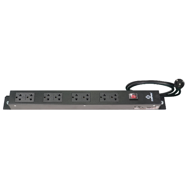รางปลั๊กไฟ G7-00008B ขนาด 8 เต้าเสียบ แบบยูนิเวอร์แซลที่เสียบได้ทั้งขากลมและขาแบน พร้อมขากาวน์, รางไฟทำจากเหล็ก Elector-Galvanize หุ้มเคลือบสีดำ พร้อมอุปกรณ์ป้องกันไฟกระชาก (Line Suppression) อุปกรณ์ตัดกระแสไฟเกิน (Over Current) และป้องกันไฟฟ้าลัดวงจร (Short Circuit Breaker) เหมาะสำหรับติดตั้งใช้งานในตู้ Rack และทั่วไป ให้ความปลอดภัยกับอุปกรณ์เครือข่ายคอมพิวเตอร์และเครื่องใช้ไฟฟ้าทั่วไป