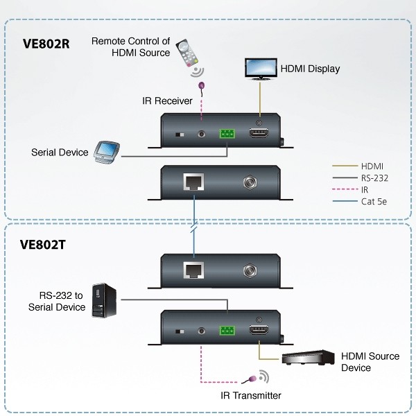 ATEN VE802 HDMI HDBASET-LITE EXTENDER WITH POH 4K@40M HDBASET CLASS B