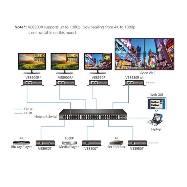 | คุณลักษณะเด่น | HDMI Over IP Transmitter ที่สามารถส่งสัญญาณแบบ visually lossless ระดับ 4K ทั้งภาพและเสียง โดยมีค่าความหน่วงต่ำสุด เชื่อมต่อสัญญาณผ่านระบบ LAN มาตรฐาน Gigabit network switch ส่งสัญญาณวิดีโอคุณภาพสูงสแบบ visually lossless ถึงระดับ 4K @ 60 Hz 4:2:0 และ 4K @ 30 Hz 4:4:4 |
