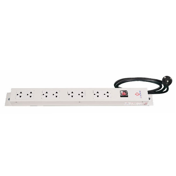 รางปลั๊กไฟ G7-00008 ขนาด 8 เต้าเสียบ แบบยูนิเวอร์แซลที่เสียบได้ทั้งขากลมและขาแบน พร้อมขากาวน์, รางไฟทำจากเหล็ก Elector-Galvanize หุ้มเคลือบสีเทาอ่อน พร้อมอุปกรณ์ป้องกันไฟกระชาก (Line Suppression) อุปกรณ์ตัดกระแสไฟเกิน (Over Current) และป้องกันไฟฟ้าลัดวงจร (Short Circuit Breaker) เหมาะสำหรับติดตั้งใช้งานในตู้ Rack และทั่วไป ให้ความปลอดภัยกับอุปกรณ์เครือข่ายคอมพิวเตอร์และเครื่องใช้ไฟฟ้าทั่วไป