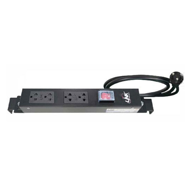 Link CH-10304A PDU 4 TIS Outlet w/Cable 3 M. + Lighting Switch w/Guard , 16A, Electronic Circuit Breaker