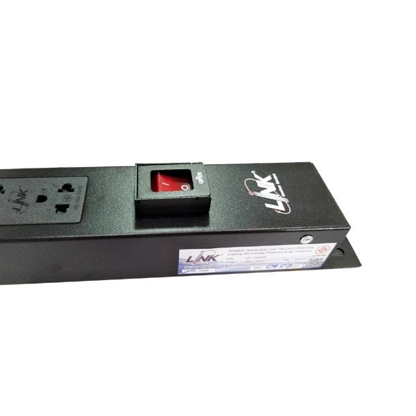 Link CH-10306A PDU 6 TIS Outlet w/Cable 3 M. + Lighting Switch w/Guard , 16A, Electronic Circuit Breaker