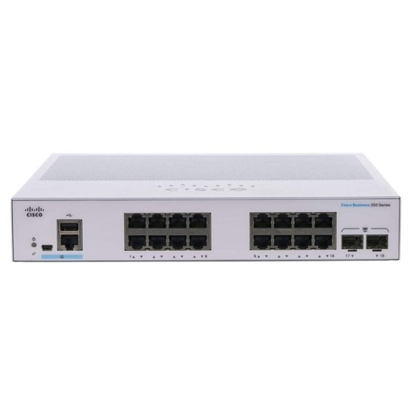 Cisco CBS250-16T-2G-EU Smart Switch 16-Port Gigabit 10/100/1000 Mbps + 2 Gigabit SFP, Mountable Rack 1 U