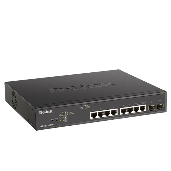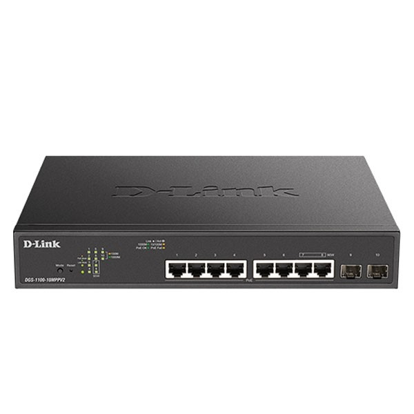 อุปกรณ์ PoE สวิตซ์ DGS-1100-10MPPV2 บริหารจัดการได้ระดับ Layer 2 ขนาด 10 พอร์ตกิกะบิต 10/100/1000 Mbps Ethernet โดยมี 8 พอร์ตแบบ RJ45 รองรับ PoE/PoE+ มาตรฐาน 802.3af, 802.3at และ 802.3at/bt (พอร์ตที่ 7 – 8 จ่ายไฟสูงสุด 90 W), จ่ายไฟ PoE รวม 242 วัตต์ และมี 2 พอร์ต SFP เป็น Uplink, รองรับการทำ VLAN, IGMP Snooping, Bandwidth Control, ตัวเครื่องเป็นโลหะ รองรับติดตั้งในตู้แร็ค (Rack) หรือแขวนผนังและวางบนโต๊ะได้ เหมาะสำหรับบริหารจัดการอุปกรณ์เครือข่ายคอมพิวเตอร์ และอุปกรณ์เครือข่ายอื่นๆ