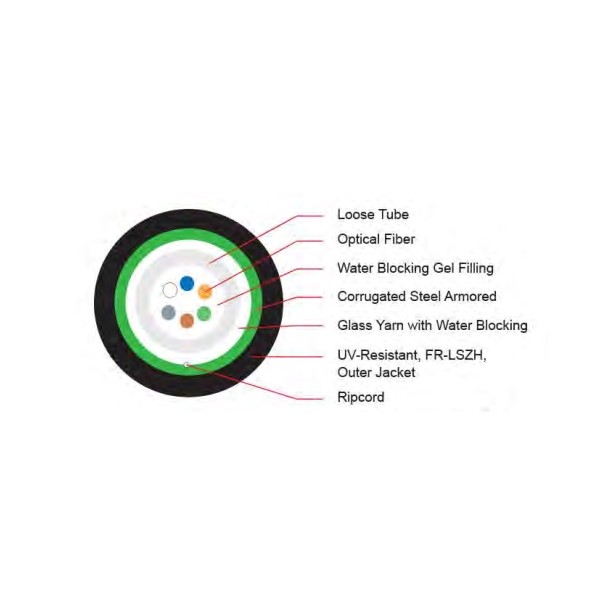 Link UFC9304A Fiber Optic 4 Core OS2 9/125 μm Single-Mode Outdoor/Indoor Cable, Armored LSZH-FR