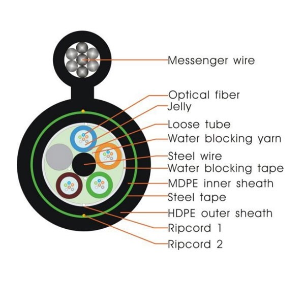 สายไฟเบอร์ออปติก UFC9824MAD แบบ 24 Core Multi Tube เปลือกหุ้มเป็น PE สีดำหนา 2 ชั้น แข็งแรงทนต่อสภาพอากาศและสิ่งขีดข่วน ประเภท Single-Mode มาตรฐาน OS2 ขนาด Core เส้นผ่าศูนย์กลาง 9 ไมครอน ขนาด Cladding เส้นผ่าศูนย์กลาง 125 ไมครอน (9/125 μm) สายมีลวดสลิงแกนฝอยในตัว (Stranded Drop Wire) ช่วยเพิ่มแรงดึงรับน้ำหนักได้มาก เกราะเหล็กป้องกัน (Steel Armored) สัตว์กัดแทะ ออกแบบมาพิเศษมีสายใยแก้วจำนวนมาก ติดตั้งบนเสาไฟฟ้าหรือชายคาอาคารได้อย่างสะดวก ดึงได้ตึงไม่ฉีกขาด ฉนวนหุ้มสายใช้สาร HDPE ทนสภาวะแวดล้อม เหมาะสำหรับเป็น Backbone เส้นทางหลักของระบบเน็ตเวิร์ก เชื่อมต่อระหว่างอาคารและในอาคาร ประหยัดพื้นที่มีหลาย Core ในสายเส้นเดียว