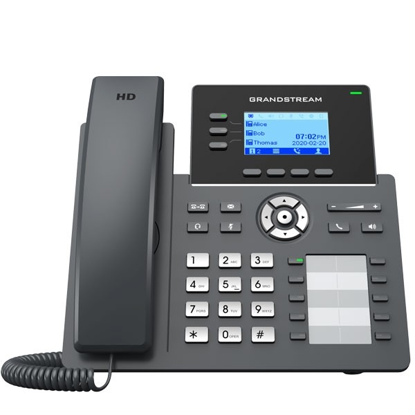 โทรศัพท์ IP Phone รุ่น GRP2604P ระดับธุรกิจใช้งานง่ายและมีประสิทธิภาพ รองรับ 3 Lines 6 SIP Accounts เสียงสนทนาคมชัดระดับ HD Audio มาพร้อมเทคโนโลยีป้องกันเสียงรบกวนรอบข้าง รองรับการโทรประชุม 5 สาย หน้าจอ LCD Backlit ความละเอียด 132x64 พิกเซล 2.7 นิ้ว พร้อม 2 พอร์ต Gigabit PoE 10/100/1000Mbps (RJ-45) มาตรฐาน IEEE 802.3af, มีเทคโนโลยีการเข้ารหัสความปลอดภัยอันทันสมัย (SRTP และ TLS) ต่อใช้งานได้กับตู้สาขา IP-PBX และผู้ให้บริการ VOIP SIP Provider โทรทางไกลผ่านอินเตอร์เน็ต