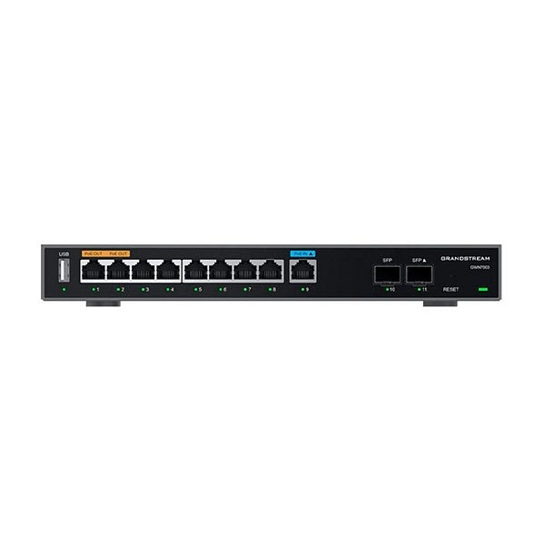 Grandstream GWN7003 Multi-WAN Gigabit VPN router, 2x Gigabit SFP ports, 9x Gigabit Ethernet ports and 2 PoE ports. Built-in firewall, Cloud management