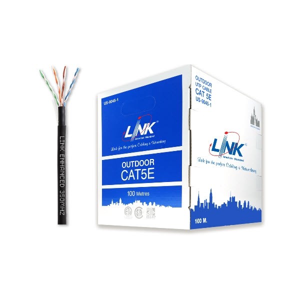 Link US-9045-1 CAT5E Outdoor 100M UTP PE Cable (Double Jacket), Bandwidth 350MHz, CMX Black Color *ส่งฟรีเขต กทม.