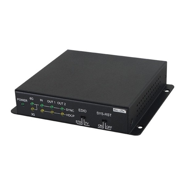 เป็น HDMI version 2.0 แบบ 6G HDMI ที่รองรับความละเอียดสูงถึง 4K@60Hz 444 เข้ากันได้กับระบบ HDCP 2.2, HDCP1.4 และ DVI 1.0 (ไม่สนับสนุนระบบ Deep Color/Color space YCbCr 422/444) มี HDMI input 1 ช่อง และ HDMI output 2 ช่อง มีอัตราการส่งข้อมูลสูงถึง 18 Gbps/600 MHz สนับสนุนระบบ CEC เพื่อสั่งงานอุปกรณ์ต้นทาง แสดงวิดีโอจาก 1 แหล่งสัญญาณที่มีความคมชัดสูงแบบ Ultra High-Definition ไปยัง 4 จอแสดงผลแบบ UHDTV เข้ากันได้กับระบบ 3D pass-through เพื่อใช้งานอุปกรณ์ 3D ร่วมกับ 3D TV สนับสนุนความละเอียดวิดีโอ UHDTV ดังนี้ 4096×2160@24/25/30/60Hz 3840×2160@24/25/30/50/60Hz สนับสนุน Audio passthrough high definition : LPCM 2/5.1/7.1CH, Dolby Digital 2/5.1CH, DTS 2/5.1CH, Dolby TrueHD, DTS-HD Master Audio & Dolby Atmos HDMI input สนับสนุนการตั้งค่า EDID แบบ 'Standard' mode และ 'TV' modeรายละเอียด