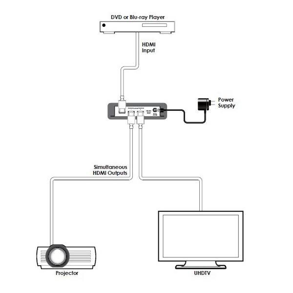 เป็น HDMI version 2.0 แบบ 6G HDMI ที่รองรับความละเอียดสูงถึง 4K@60Hz 444 เข้ากันได้กับระบบ HDCP 2.2, HDCP1.4 และ DVI 1.0 (ไม่สนับสนุนระบบ Deep Color/Color space YCbCr 422/444) มี HDMI input 1 ช่อง และ HDMI output 2 ช่อง มีอัตราการส่งข้อมูลสูงถึง 18 Gbps/600 MHz สนับสนุนระบบ CEC เพื่อสั่งงานอุปกรณ์ต้นทาง แสดงวิดีโอจาก 1 แหล่งสัญญาณที่มีความคมชัดสูงแบบ Ultra High-Definition ไปยัง 4 จอแสดงผลแบบ UHDTV เข้ากันได้กับระบบ 3D pass-through เพื่อใช้งานอุปกรณ์ 3D ร่วมกับ 3D TV สนับสนุนความละเอียดวิดีโอ UHDTV ดังนี้ 4096×2160@24/25/30/60Hz 3840×2160@24/25/30/50/60Hz สนับสนุน Audio passthrough high definition : LPCM 2/5.1/7.1CH, Dolby Digital 2/5.1CH, DTS 2/5.1CH, Dolby TrueHD, DTS-HD Master Audio & Dolby Atmos HDMI input สนับสนุนการตั้งค่า EDID แบบ 'Standard' mode และ 'TV' modeสเปคสินค้า