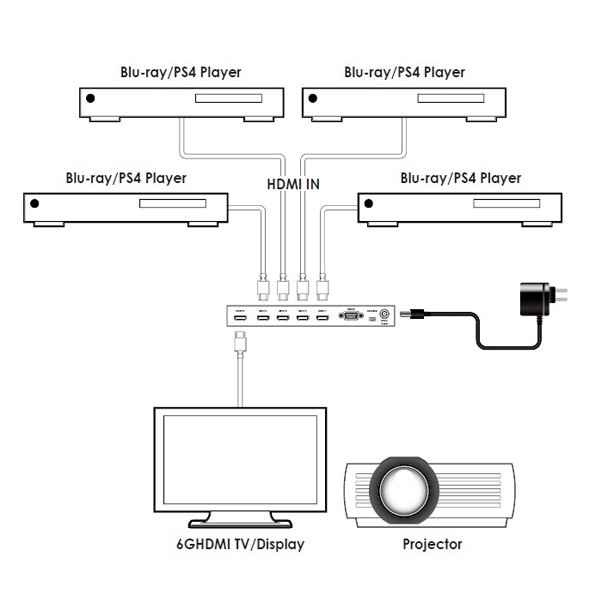 มี HDMI input 4 ช่อง และ HDMI output 1 ช่อง