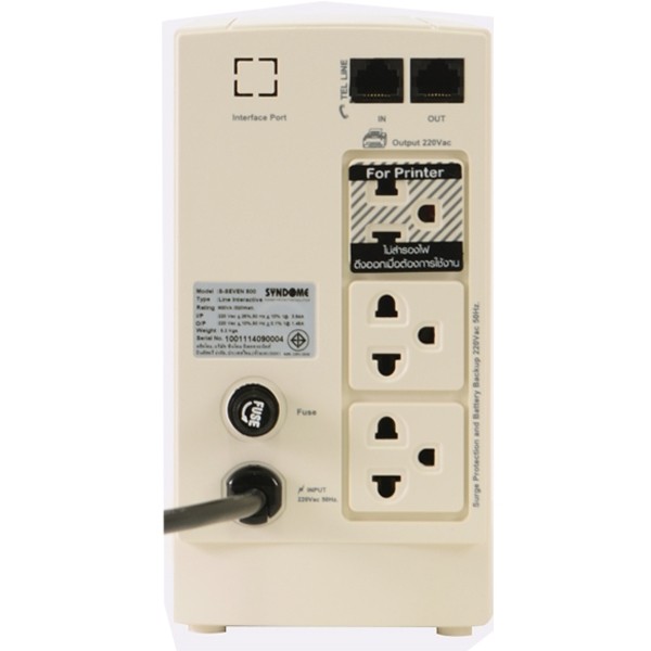 SYSDOME S7-800 (800VA/360Watt) จ่ายกำลังไฟได้เต็ม VA/Watt มีระบบป้องกันไฟกระชากทางสายโทรศัพท์ (Surge Protection)
