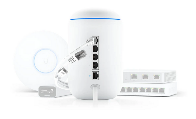 อุปกรณ์ UniFi Dream Machine (UDM) รองรับการใช้งานหลากหลายในตัวเดียว โดยสามารถเชื่อมต่อผู้ให้บริการ Internet พร้อมระบบป้องกัน (Security) ได้ มีไวไฟความเร็วสูงแบบ 2 ย่านความถี่ 2.4GHz / 5GHz และมี 4 พอร์ตสวิตซ์ ความเร็ว 10/100/1000Mbps ควบคุมการใช้งานระบบ Controller ได้จากระยะไกลด้วย App ในโทรศัพท์มือถือและ UniFi Software