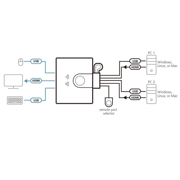 ATEN CS22HF 2-PORT USB FHD HDMI CABLE KVM SWITCH