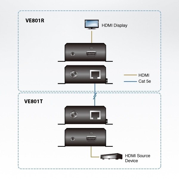 ขยายสัญญาณ HDMI ผ่านสาย Cat 5e/6/6a cable หรือ ATEN 2L-2910 Cat 6 เพียงเส้นเดียว