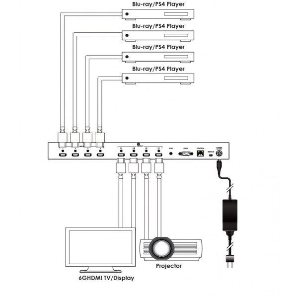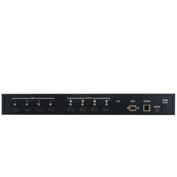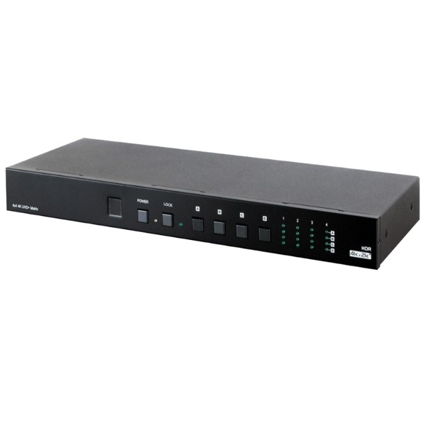อุปกรณ์เชื่อมต่อแบบ HDMI Matrix 4x4 เครื่องสลับสัญญาณ HDMI แบบ Matrix เข้า 4 ออก 4 รองรับความละเอียดวิดีโอสูงสุด 4K@60HZ 444 เข้ากันได้กับระบบ HDCP 2.2 และ 1.4, รองรับ 3D และ ระบบเสียง HD-Audio ทำให้แสดงเสียงและวิดีโอได้คุณภาพดีที่สุด