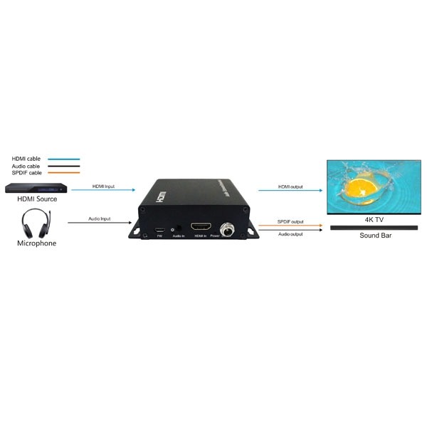 - รองรับการแยกเสียงจาก HDMI input ออกทั้ง SPDIF 5.1 ch, Analog Audio PCM2.0 ch output หรือ รวมเสียงอนาล็อก 2.0ch เข้ารวมกับสัญญาณ HDMI