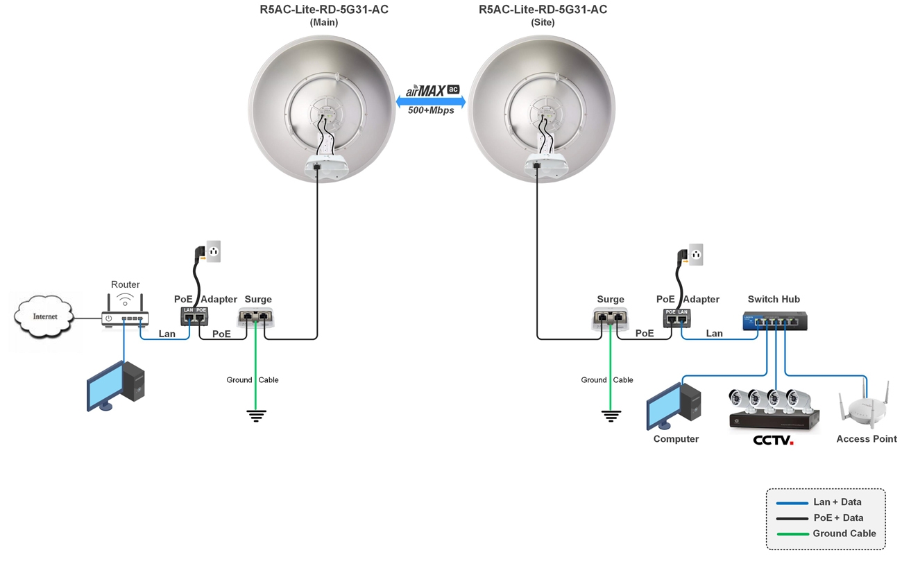 Set RocketDish 5G31-AC + R5AC-Lite : High-Peformance Point-to-Point 10-20Km, High Speed 450+Mbps, Freq 5GHz, Power 27dBm, Dish 31dBi Carrier Class 2x2MIMO