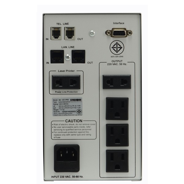 SYNDOME SZ-1201 PRO UPS 1200VA/960W, Line Interacitbe with Stabilizer, Universal Socket 5 Outlet (ส่งฟรีทั่วประเทศ)