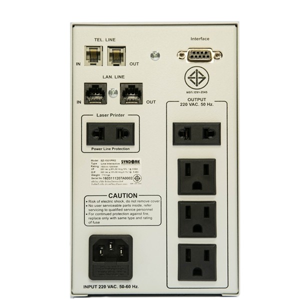 เครื่องสำรองไฟฟ้า SZ-1501 PRO คุณภาพสูง ขนาดกำลังจ่าย 1,500 Voltamp, 1,200 Watt ระบบ Line Interactive with Stabilizer ปรับแรงดันไฟฟ้าอัตโนมัติ ป้องกันปัญหาไฟฟ้าเกินหรือไฟตก เหมาะสำหรับการใช้งานในที่ที่มีความผันผวนของแรงดันไฟฟ้าและต้องการคุณภาพใช้งานสูง มี 5 เต้ารับไฟฟ้าขาออกแบบ Universal เสียบได้ทั้งขากลมและขาแบน ระยะเวลาในการสำรองไฟที่ 20-30 นาที (เทียบโหลดคอมพิวเตอร์พร้อมจอ 1 ชุด) ควบคุมการทำงานด้วย Microprocessor มี Software อัจฉริยะเพื่อดูแล Computer, เปลี่ยน Battery อย่างง่ายดายด้วยมือเปล่า, มี TEL Line Protection ระบบป้องกันไฟกระชากทางสายโทรศัพท์ มี LED แสดงระดับการใช้งานของ Battery และอุปกรณ์ต่อพ่วง