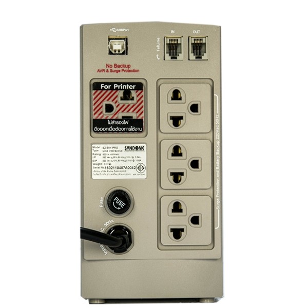 เครื่องสำรองไฟฟ้า SZ-501 PRO คุณภาพสูง ขนาดกำลังจ่าย 500 Voltamp, 400 Watt ระบบ Line Interactive with Stabilizer ปรับแรงดันไฟฟ้าอัตโนมัติ ป้องกันปัญหาไฟฟ้าเกินหรือไฟตก เหมาะสำหรับการใช้งานในที่ที่มีความผันผวนของแรงดันไฟฟ้าและต้องการคุณภาพใช้งานสูง มี 4 เต้ารับไฟฟ้าขาออกแบบ Universal เสียบได้ทั้งขากลมและขาแบน ระยะเวลาในการสำรองไฟที่ 20-30 นาที (เทียบโหลดคอมพิวเตอร์พร้อมจอ 1 ชุด) ควบคุมการทำงานด้วย Microprocessor มี Software อัจฉริยะเพื่อดูแล Computer, เปลี่ยน Battery อย่างง่ายดายด้วยมือเปล่า, มี TEL Line Protection ระบบป้องกันไฟกระชากทางสายโทรศัพท์ มี LED แสดงระดับการใช้งานของ Battery และอุปกรณ์ต่อพ่วง