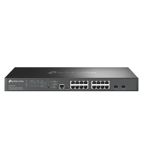 tp-link SG3218XP-M2 Omada 16-Port 2.5G and 2-Port 10GE SFP+ L2+ Managed Switch with 8-Port PoE+ (240 W PoE Budget), Centralized Cloud Management, Rack Mountable