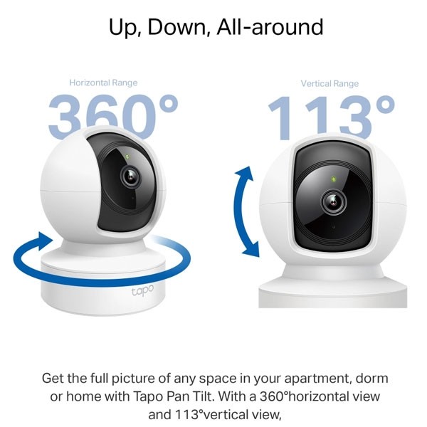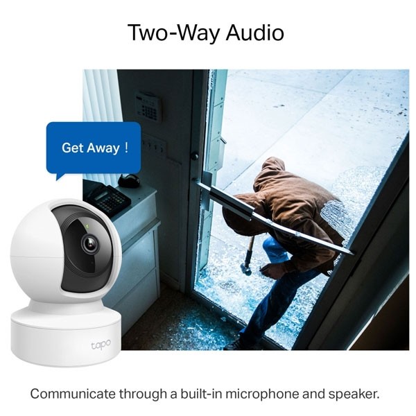 อุปกรณ์กล้องวงจรปิดไร้สายแบบ Pan/Tilt Tapo C212 ความละเอียด 3 ล้านพิกเซลคุณภาพระดับ 2K Definition กล้องสามารถปรับหมุนแนวระนาบได้ 360 องศา และ Tilt หรือหมุนกล้องแนวดิ่งได้ 114 องศา, ระยะอินฟาเรดส่องได้ไกลสุด 30 ฟุต, มี 1 พอร์ตแลน, ฟังก์ชั่น Motion Detection and Notifications แจ้งเตือนให้ทราบทันทีเมื่อตรวจพบความเคลื่อนไหว, มีไมโครโฟนและลำโพงในตัว สามารถพูดคุยผ่านตัวกล้องได้ หรือผ่านสมาร์ทโฟนได้ (Two-Way Audio), รองรับการบันทึกภาพผ่าน Micro SD card ได้สูงสุดถึง 512 GB สามารถทำงานร่วมกันกับ Google Assistant และ Amazon Alexa ได้