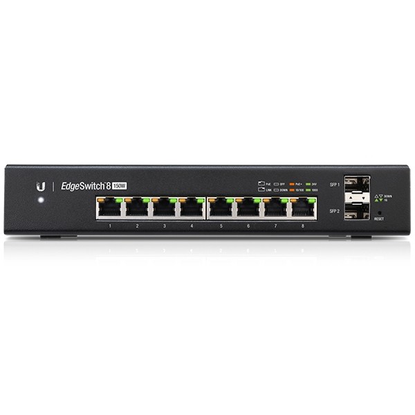 Ubiquiti ES-8-150W EdgeSwitch PoE 8-Port Gigabit Managed 802.3af/at or 24V passive PoE, 2-Port SFP Enclosure SGCC Steel